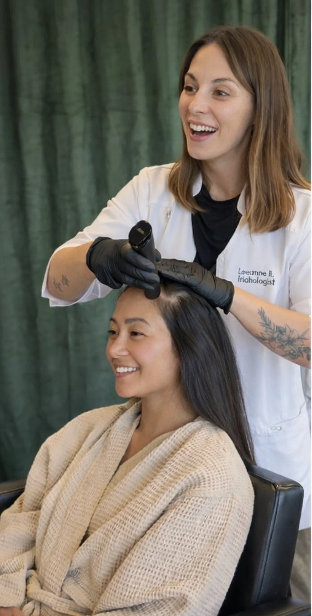 Blending Trichology-based scalp therapy for both women & men with intentional haircut rituals designed to restore balance for hair loss and scalp conditions.